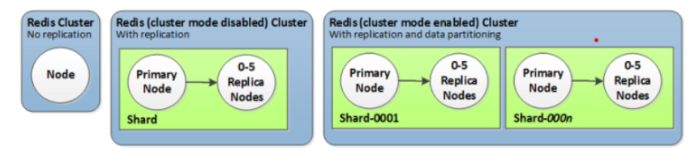 3) 클러스터 모드와 Replication 모두 지원 (클러스터 모드 O) : Rrimary/Replica Node 로 shard를 여러 벌 준비하여 data partitioning